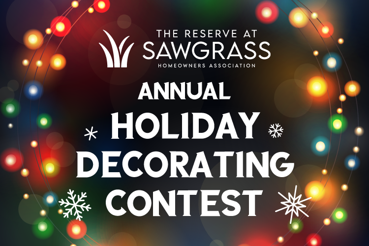 The Reserve at Sawgrass Social Committee invites you to participate in our Annual Holiday Decorating Contest! Winners will be contacted by the Social Committee if they are selected. You may even get a small prize!
