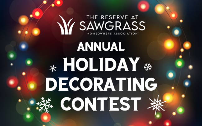 The Reserve at Sawgrass Social Committee invites you to participate in our Annual Holiday Decorating Contest! Winners will be contacted by the Social Committee if they are selected. You may even get a small prize!